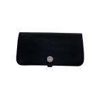 HERMES◆長財布/レザー/BLK/メンズ/ドゴンロング/角にダメージ有