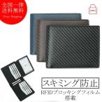 財布 二つ折り メンズ カーボンレザー 折りたたみ 薄型 コンパクト 小型 RFID 海外旅行 ウォレット