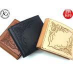 送料無料【KC,s】ハンドカービング 2つ折り革財布 ロータス ビルフォード [タン/アーモンド/黒/赤]【メンズ/2つ折り/革財布/手彫り/カービング/アメカジ】
