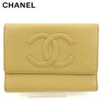 【特別割引★30%OFF】シャネル 三つ折り 財布 ファスナー付き 中長財布 レディース メンズ オールドシャネル ココマーク ベージュ ゴールド 中古