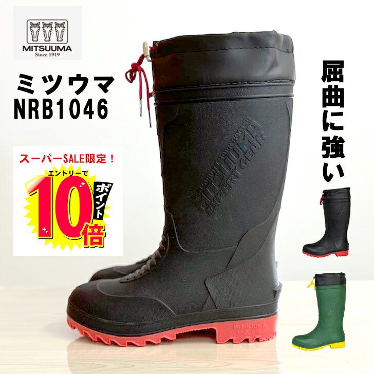 【ポイント最大10倍】ミツウマ 長靴 メンズ 農作業 MRB1046 軽量 ワークブーツ TPE製法 防水 ドローコード 滑りにくい 通年 クロ カーキ