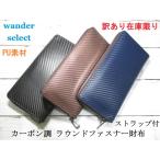SALE 財布 メンズ 長財布 ラウンドファスナー クラッチバッグ PU素材 かっこいいカーボン調デザイン ストラップ付 wander select 訳あり 在庫限り セール 格安