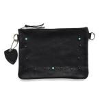 HTC BLACK エイチティーシーブラック SACOCHE SN33TQ フラワーモチーフ スタッズ レザーサコッシュ ショルダーバッグ 黒 クラッチバッグ