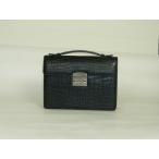 メンズクラッチバッグ(手提げ付)イタリア製 クロコダイル艶消し・センター使い 黒