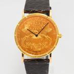 コルム 中古 メンズ CORUM コインウォッチ 手巻き 20ドル K18 750 レザー ゴールド 軽仕上げ