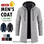 カーディガン メンズ ニットジャケット ミドル丈 ニット ゴルフ フード付き セーター 裏起毛 厚手 防寒 アウター コート