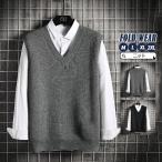 メンズ ニットベスト Vネック 無地 セーター ビジネス カジュアル 春秋冬 レイヤード風 暖かい 防寒 袖なし 保温 カジュアル ゴルフウエア メンズファッション 通勤 通学 オフィス お洒落 送料無料
