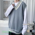 ニットベスト メンズ Vネック プルオーバー スクールベスト セーター ビジネス ゆったり 制服 シンプル 無地 通学 原宿風 オールシーズン 春秋