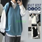 ニットベスト メンズ Vネック プルオーバー セーター スクールベスト 制服 カジュアル ゆったり 大きいサイズ 無地 春 秋 通勤 通学 おしゃれ