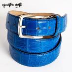 ベルト メンズ レザー 本革 カジュアル ビジネス ゴルフ クロコダイル ワニ革 ロイヤルブルー/青 35mm クアトロガッティ quattrogatti 1718 日本製