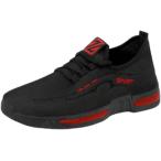 メンズ スニーカー 素早く履ける 滑り止め 蒸れにくい ランニングシューズ ウォーキング 通気性 MDM(ブラック/レッド, 26.0 cm)