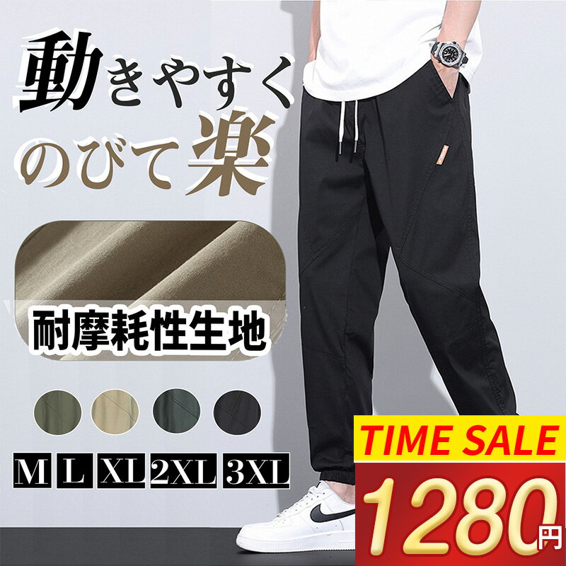 \SS!MAX'99%OFF/ 超伸縮 ジョガーパンツ メンズ ズボン 秋 綿97% チノパンツ ワークパンツ 大きいサイズ 裾リブ ストレッチパンツ ウエストゴム リラックス 調整紐 アンクル丈 9分丈 オシャレ テーパードパンツ アンクル丈 スウェットパンツ 通気