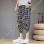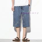 サルエルパンツ メンズ ズボン 袴パンツ ワイドパンツ サルエル ファッション チェック柄 七分丈 短パン ショートパンツ カジュアル 夏 格子縞 調整紐