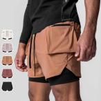 ハーフパンツ タイツ付き フィットネス トレーニング ランニング スポーツウェア ショートパンツ ポケット 吸汗速乾 メンズ 父の日