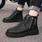 ブーツ メンズ カジュアルシューズ ハイカット 厚底 ビジネス 通学 通勤 無地 春 秋 冬 アウター ワーク ブラック
