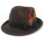 【並行輸入品】ウール風 フェドーラハット フェルトハット ビンテージハット フェザー付き つば広 紳士 ジャズキャップ メンズ レディース, コ