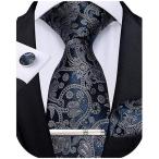 【並行輸入品】DiBanGu ペイズリーネクタイ ポケットチーフ メンズ 織ネクタイ シルクハンカチ カフスボタンセット 03 シルバー ネイビー