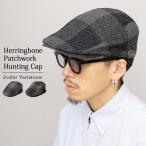 ハンチング メンズ 帽子 ヘリンボーン パッチワーク チェック ワイドシルエット アジャスター付き おしゃれ カジュアル 大人コーデ 秋 冬
