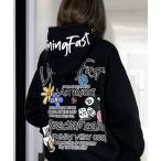 パーカー 映えフードロゴ オーバーサイズ グラフィック スウェット パーカー レディース メンズ