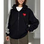 パーカー 萌え袖 ボリュームスリーブ ハート刺繍 ライン スウェット ジップ パーカー レディース メンズ