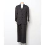 セットアップ 「上下洗える/ベスト付」WEB限定スリーピーススーツ ウールライク グレンチェック グレー メンズ