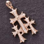 ペンダントトップ メンズ K18PG 18K 18金 ダイヤモンド 3連 クロス 十字架 ペンダントヘッド ピンクゴールド 刻印入り 鑑別書付き 大きめ