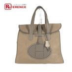 HERMES エルメス フードゥ トートバッグ カバン ボストンバッグ パンチング H ロゴ ハンドバッグ グレー メンズ【中古】
