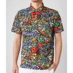 ポロシャツ LOUDMOUTH/ラウドマウス ゴルフウェア ブランド ロゴ 刺繍 総柄 ハーフボタン 半袖 シャツ ポロシャツ 吸汗速乾 UV 接触冷