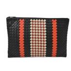 ボッテガヴェネタ クラッチバッグ/メンズポーチ BOTTEGA VENETA イントレチャート ナッパ ラムスキン ブラック/オレンジ