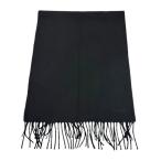 美品△HERMES エルメス カシミヤ100% ロゴ刺繍 フリンジ マフラー ストール シンプルデザイン ブラック 英国製 メンズ レディース