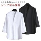 着物風 シャツ 半袖 メンズ 半襦袢 シャツ型 衿付き 大きいサイズ 夏服 衿付き シャツ Vネック カジュアルシャツ 和装 男性 襦袢 浴衣 抜け感