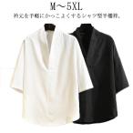 Vネック メンズ 半襦袢 シャツ 半襦袢 黒 浴衣 半襦袢 和装 半袖 夏用 襦袢 五分袖 肌着 着物 下着 作務衣 襟付き インナー 白 Tシャツ