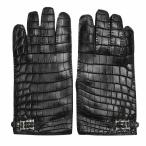 美品 エルメス HERMES Hロゴ 金具 クロコダイル レザー グローブ ワニ革 手袋 ラムスキン 8 黒 ブラック シルバー メンズ レディース■12