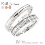 指輪 結婚ペアリング 2本セット マリッジリング ブライダル ダイヤモンド 0.3ct k18ゴールド 18金 無垢 メンズ レディース