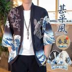 着物 羽織 カーディガン 夏服 メンズ 和風 五分袖 龍柄 甚平風 はっぴ おしゃれ はおり 甚平 花火大会 夏祭り 法被 半被 浴衣 涼しい UVカット
