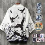 メンズ レディース 羽織 振袖 和柄 カーディガン 羽織り コート 浴衣 ゆったり 開襟シャツ 和式パーカー UVカット 七分袖 鳥柄 夏