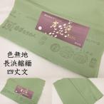 色無地 反物 生地 単衣 袷 舞絹 裏葉柳 クリームグリーン色系 浜ちりめん 長浜縮緬 菊華ちりめん 絹100% 反巾約37cm 長さ約15m以上 四丈文 共八掛付き