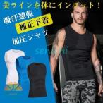 コンプレッションウエア メンズ 補正下着 Tシャツ フィットネス スポーツウェア 加圧シャツ 着圧シャツ 機能性 袖なし ストレッチ 吸汗速乾