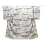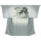 【中古】Sサイズ 男物 モスリン 長襦袢 グレー地に風景模様