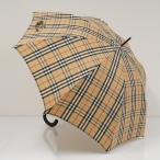 高級傘 BURBERRY LONDON バーバリー USED美品 チェック 定番柄 ベージュ グラス骨 ジャンプ レザー手元 60cm S3409