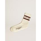 靴下 ソックス(ユーズドホワイト) ユーズドディテール&ブラウンストライプ レディース メンズ