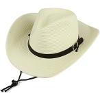 メンズ 麦わら帽子 カウボーイハット ストローハット つば広 中折れハット 紐付き 折りたためる(クリームホワイト)