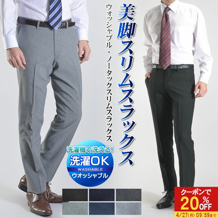【20%OFFで3,184円】 【色・サイズ限定】スラックス スリム メンズ ノータック ローライズ ウォッシャブル 春夏 秋冬 洗える パンツ ビジネス オシャレ 安い 人気 美脚