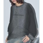 tシャツ スプレー加工レタリング刺繍クルーネックロンT レディース メンズ