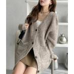 カーディガン 「6色展開」軽くて暖かい ブークレ Vネックニットカーディガン レディース