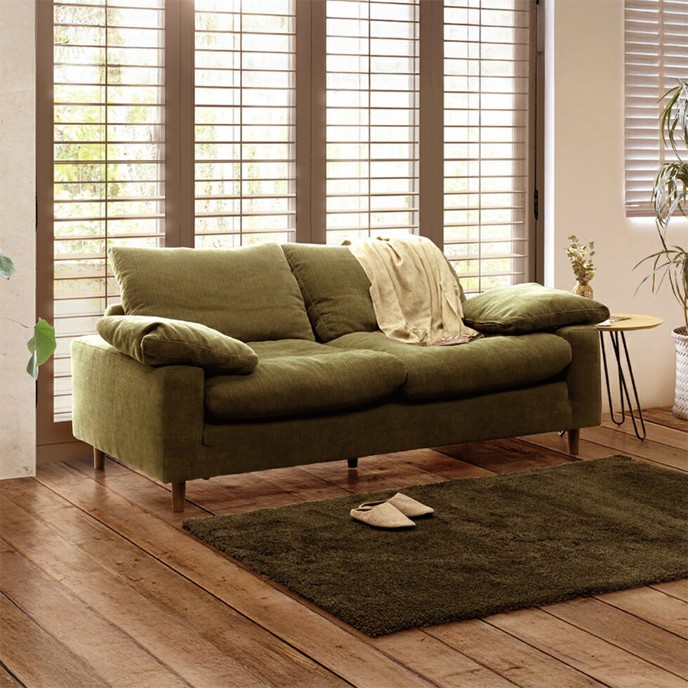 【大感謝祭★10%OFFクーポン配布】【開梱設置付】ソファー ソファ 2人掛け 3人掛け フェザー おしゃれ 北欧 羽毛 ローソファ 幅180cm 幅198cm 座面広い ファブリック 2人用 3人用 モカ カーキ 肘付き 木脚 送料無料