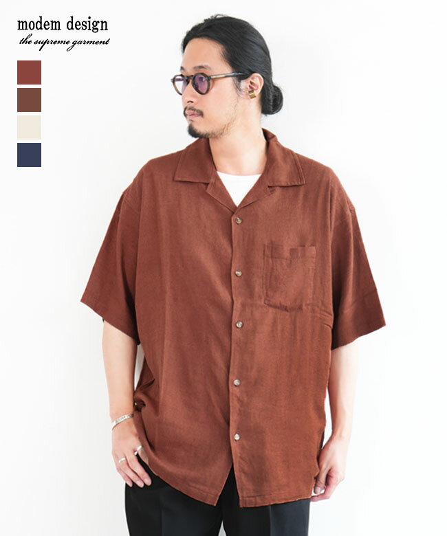 【SALE 50%OFF】[M-2501451]modem design(モデムデザイン) Linen Short Sleeve Shirt リネンショートスリーブシャツ メンズ トップス ボタンシャツ 半袖 リネンシャツ 無地 シンプル 麻シャツ[25pr]