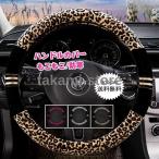 ハンドルカバー もこもこ 防寒 内装パーツ ステアリングカバー 自動車 軽自動車 兼用 オールシーズン ヒョウ柄 高級 滑り止め 握りやすい おしゃれ