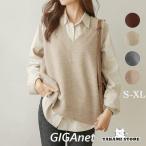 ニットベスト レディース Vネック トップス 40代 春 秋 ノースリーブ リブ編み スリット 韓国風 ゆったり 通勤 着痩せ 体型カバー 秋服 無地 OL 20代 30代 50代