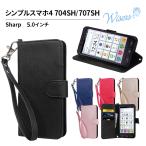 (ストラップ2種付) wisers シンプルスマホ 4 704SH 707SH 専用 Sharp シャープ softbank ソフトバンク 5.0インチ スマホ ケース カバー 手帳型 [2018 年 新型]